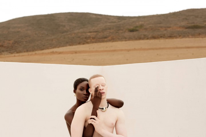 We’ve chosen to work with muses that have albinism and vitiligo in this exhibit for two reasons – the first because their beauty is as acceptable as everyone else’s beauty and should be shared with the world, and the second, in having black skin that’s made completely white by albinism or partially white by vitiligo they physically represent what we are ALL non-physically, humans who are made up completely of contrasts – nothing more and nothing less.